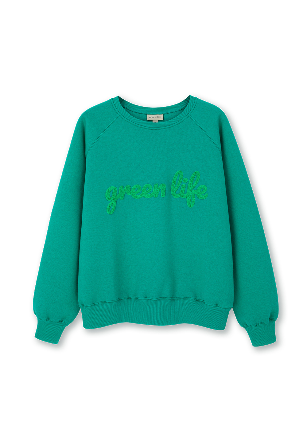 Soczysty zielony kolor bluzy wprowadzi Cię w dobry nastrój niezależnie od pory roku. To kolor nadziei i optymizmu. Damska bluza Green life sprawdzi się idealnie dla tych, co kochają zieleń, naturę i działają w duchu eko. Ma luźny krój, raglanowe rękawy. Napis wykonany jest techniką haftu chenille. Ta wyjątkowa bluza uszyta jest z miękkiej dzianiny drapanej, która wewnątrz posiada miły meszek. Zakochaj się w zieleni, Go green!