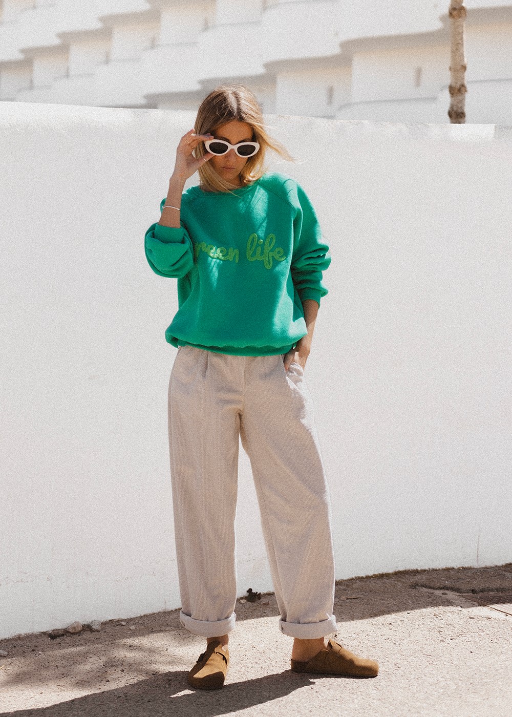 • zielona damska bluza, green life, eko, polska marka, z haftem chenille, bawełna