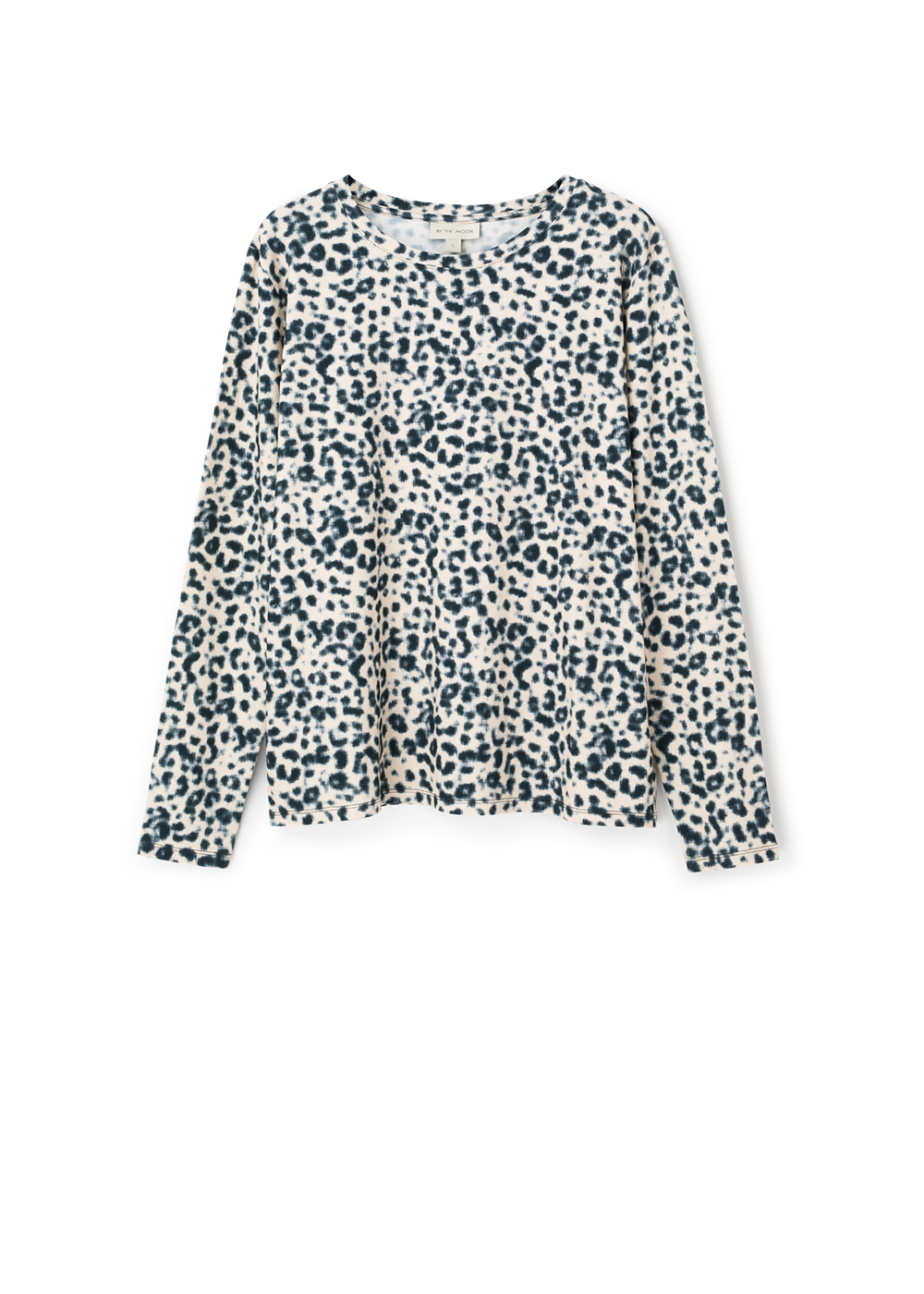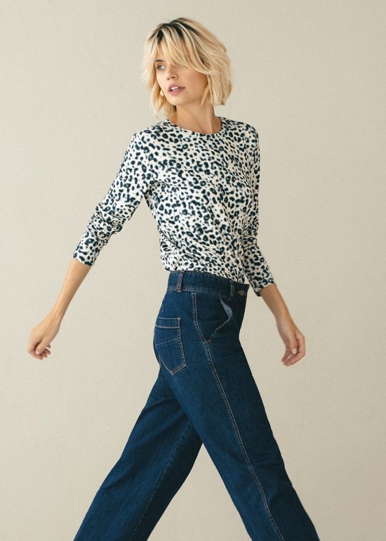 Klasyczny longsleeve z naszym bestselerowym printem leo. Wykończony plisą wokół dekoltu. Uszyty z delikatnej wiskozowej, niezwykle miękkiej dzianiny. Minimalistyczny krój z modnym nadrukiem w panterkę w stonowanym grafitowo-granatowym odcieniu. Bluzka doda wyjątkowego wyglądu każdej stylizacji. Można ją łączyć z jeansami, czarnymi garniturowymi spodniami lub naszą mini spódnicą z tym samym printem tworząc modny leopard look.