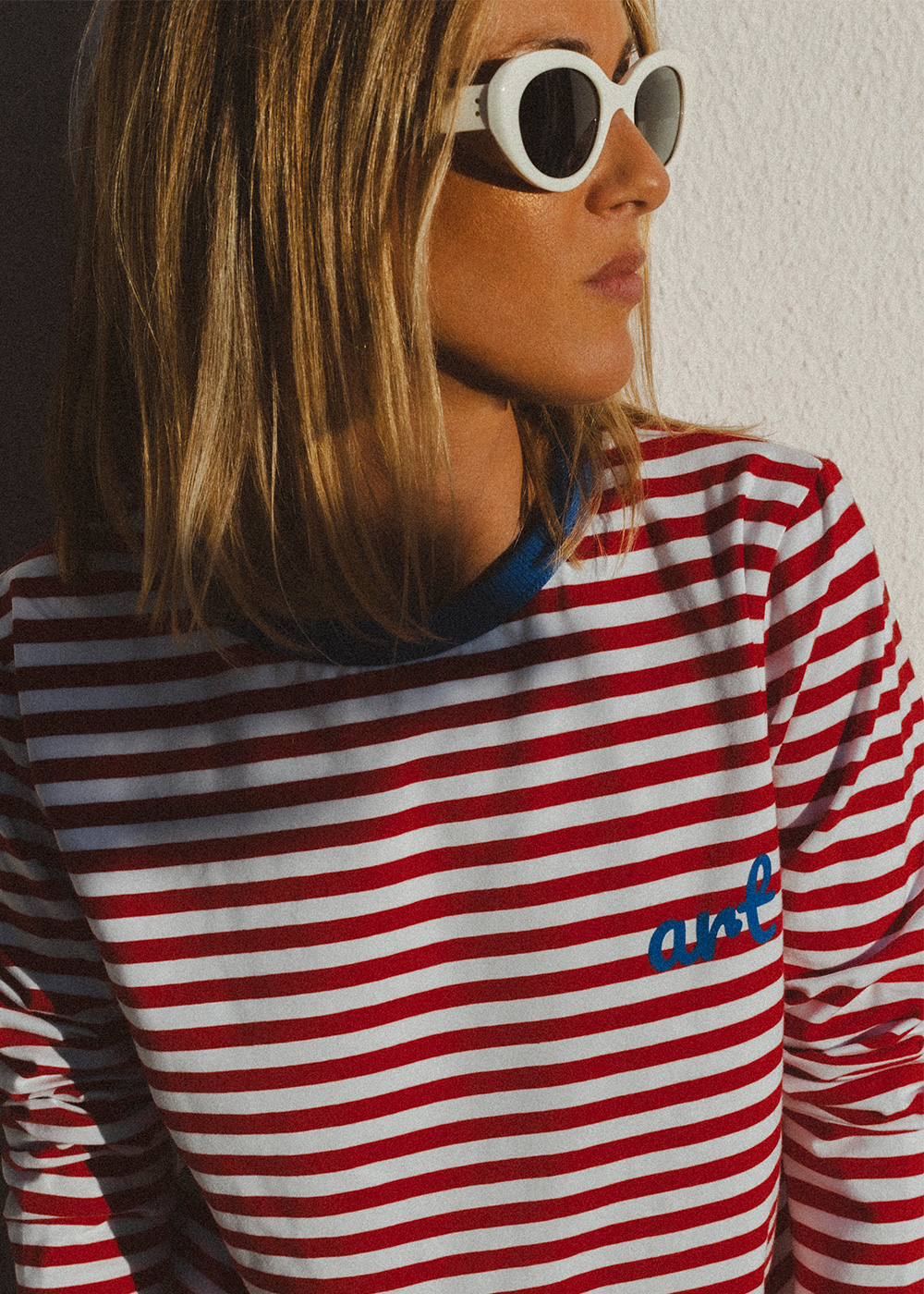 Women’s Paris chic longsleeve is a timeless classic with red stripes and a contrasting ultramarine neckline. The long sleeves can be easily rolled up on hot days. It embodies Parisian chic with a hint of nonchalance. There is a small “art” inscription on the front made in flock. This long-sleeve smells of croissant and coffee 😉 Made of high-quality cotton jersey with elastane.