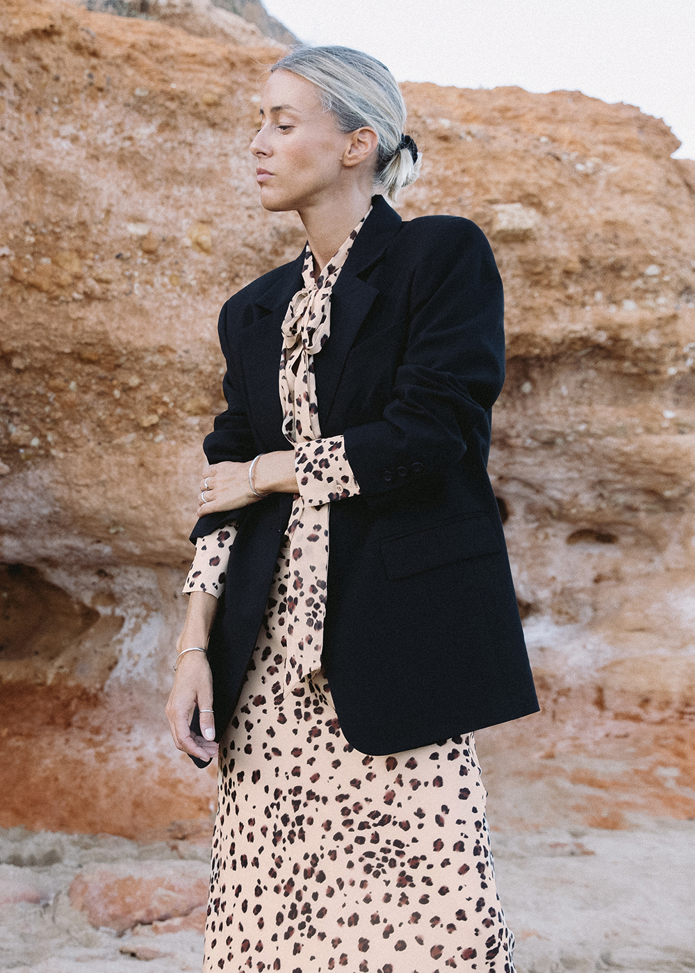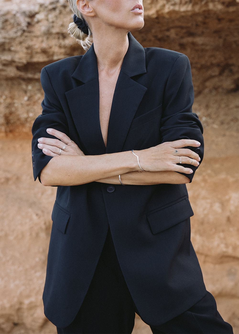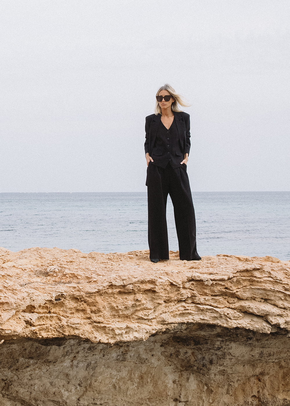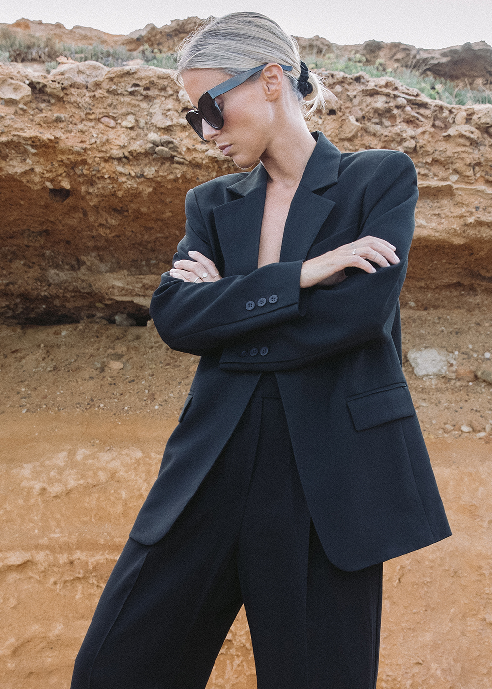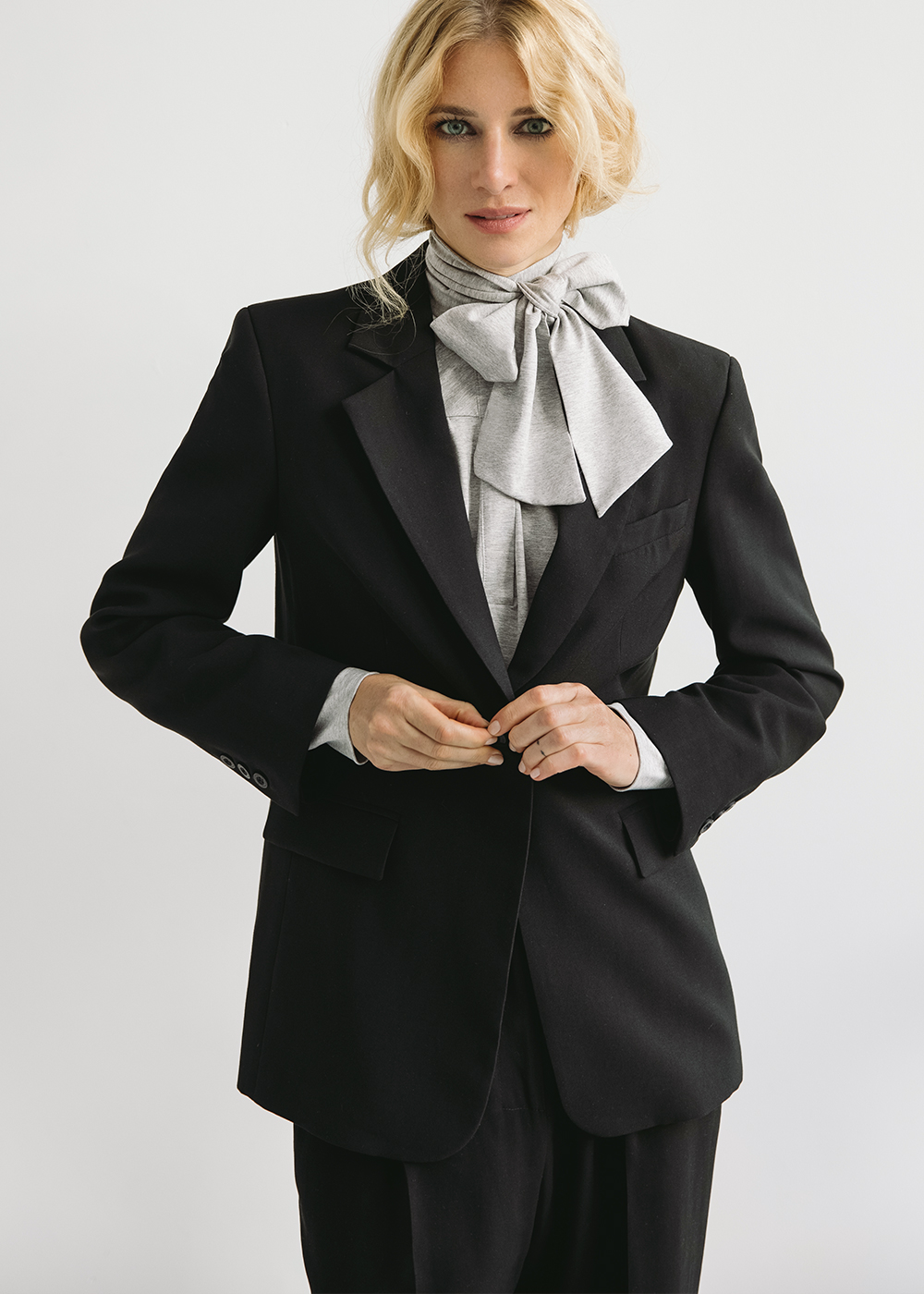 Piękna damska marynarka o lekko męskim kroju, uszyta ze szlachetnej tkaniny wiskozowej. Zapinana na jeden guzik z przodu. Guziki na mankietach, rozcięcie z tyłu. Elegancka i jednocześnie swobodna. Prosty fason, lekko podkreślający ramiona. Bez dużego taliowania. Marynarka tworzy świetny zestaw z kamizelką i szerokimi spodniami Colette z naszej kolekcji. Można ją łączyć w różnorodnych stylizacjach z sukienkami, bluzkami lub jeansami. To ponadczasowy model, który pozostanie z Tobą na długo, dając wiele możliwości tworzenia kapsułowej garderoby. To must-have w kobiecej szafie!