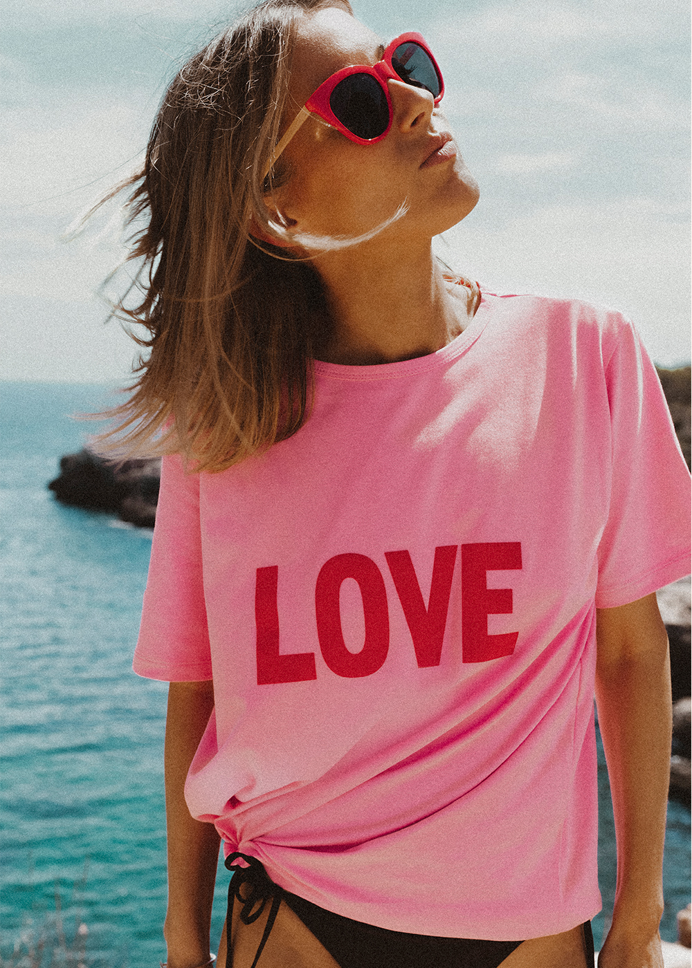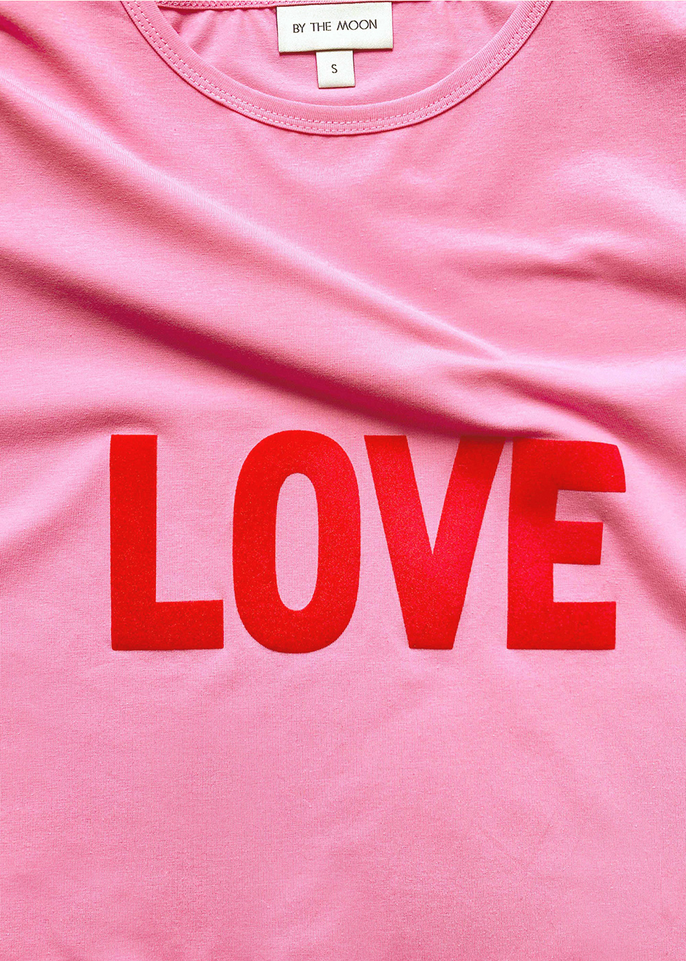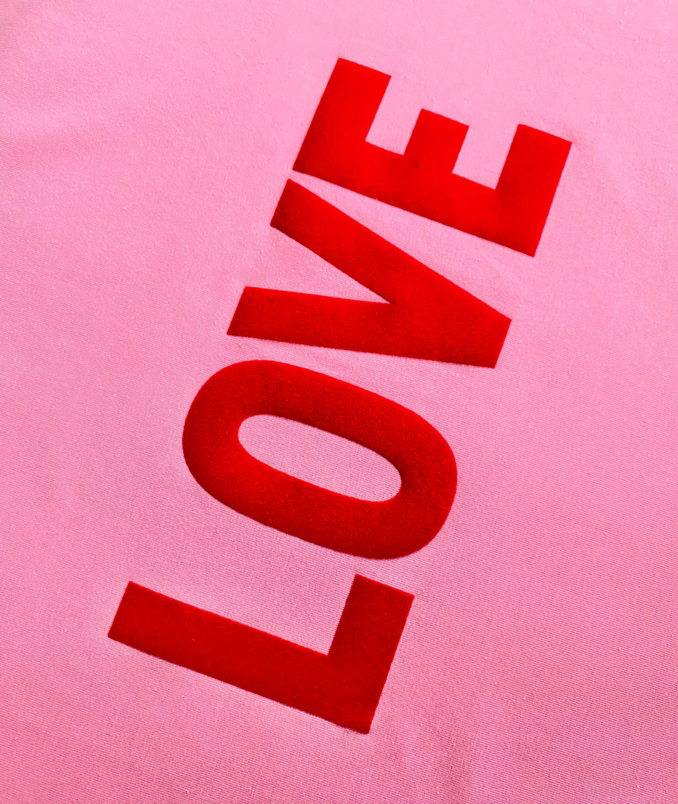 Ciesz się miłością! Lovely T-shirt to koszulka stworzona z miłości i pozytywnych wibracji. W mocnym, soczystym odcieniu różu z napisem LOVE. Napis wykonany jest flockiem, z delikatnym meszkiem, w kolorze czerwonym. Świetna do jeansów, spódnic, naszego garnituru Colette czy dresów. Nasz LOVE jest do wszystkiego i dla każdego. Ma luźny krój, uszyty jest z wysokiej jakości dzianiny z certyfikatem OEKO-Tex.
