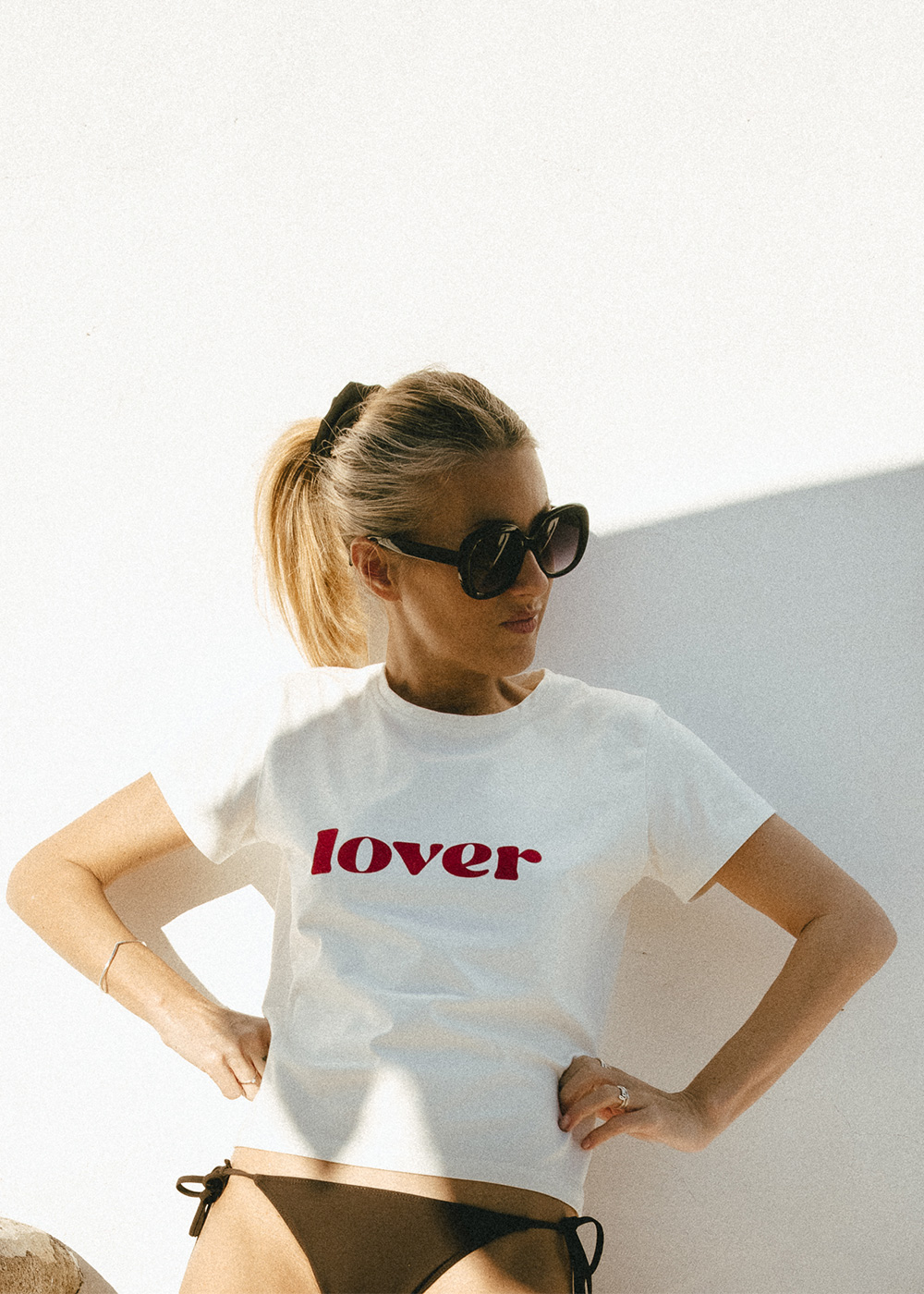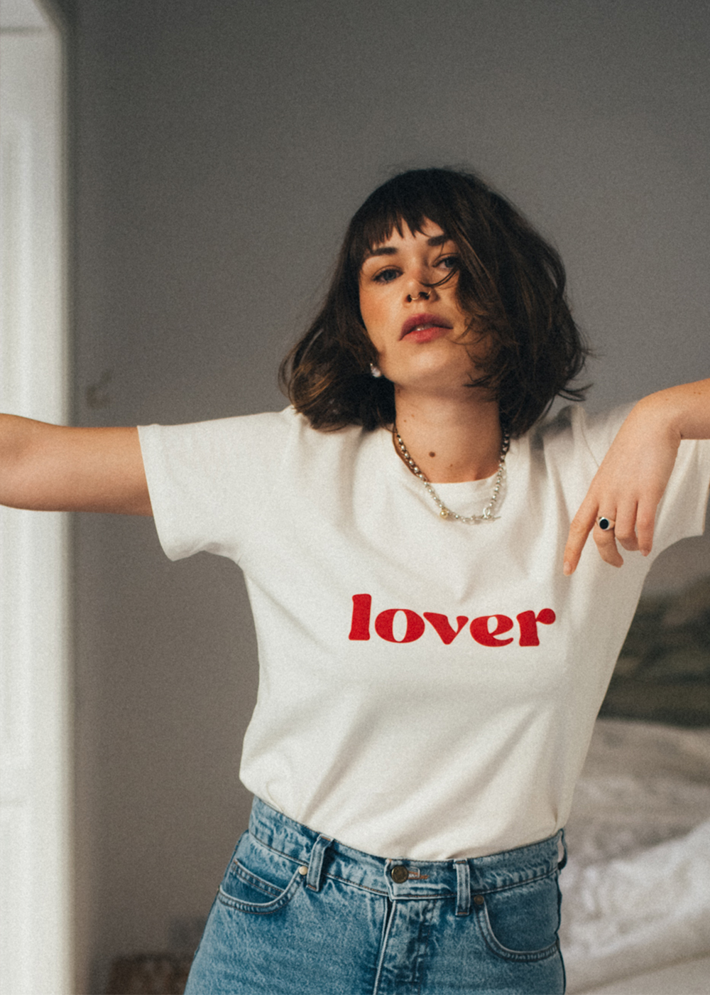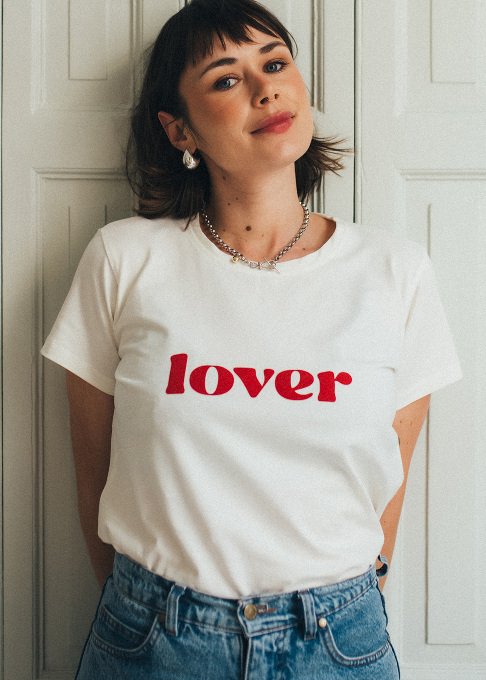 Minimalistyczny, a zarazem wyrazisty, damski T-shirt z napisem lover to esencja miłości i stylu. Dla wszystkich kochających, kochanych i zakochanych! Doskonały na Walentynki, czy inne miłosne spotkania. Wykonany z miękkiej, przyjemnej w dotyku bawełny. To model, który pasuje absolutnie do wszystkiego! Noś go z ulubionymi jeansami, szerokimi spodniami czy dziewczęcą mini – zawsze wygląda stylowo i na luzie. Koszulka lover to nasz nowy model – bardziej dopasowany i krótszy od naszych dotychczasowych t-shirtów.