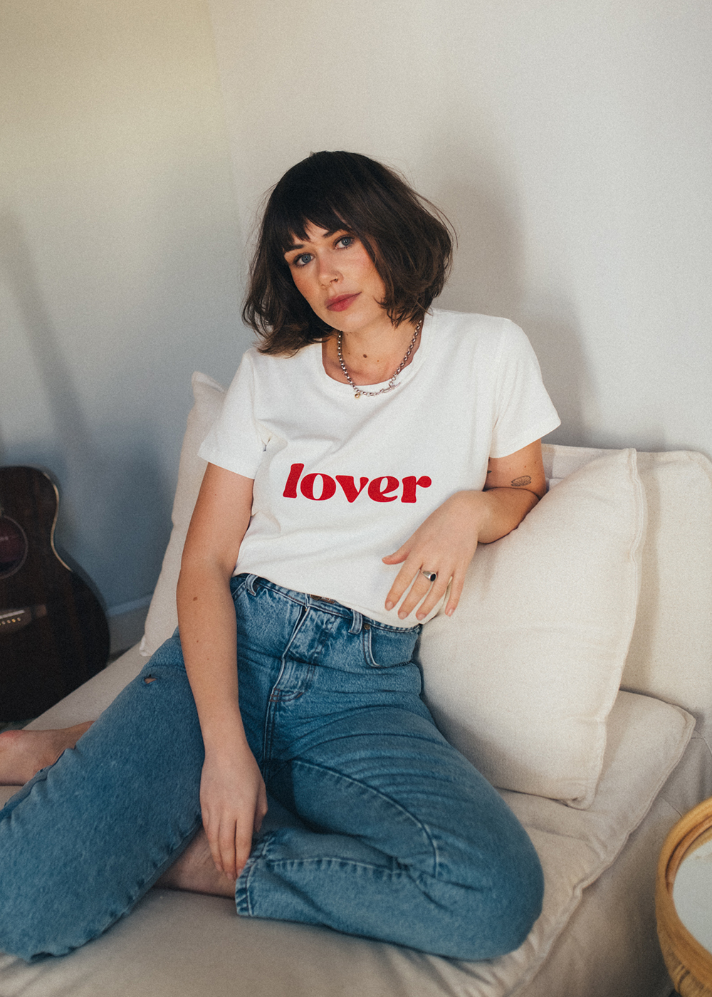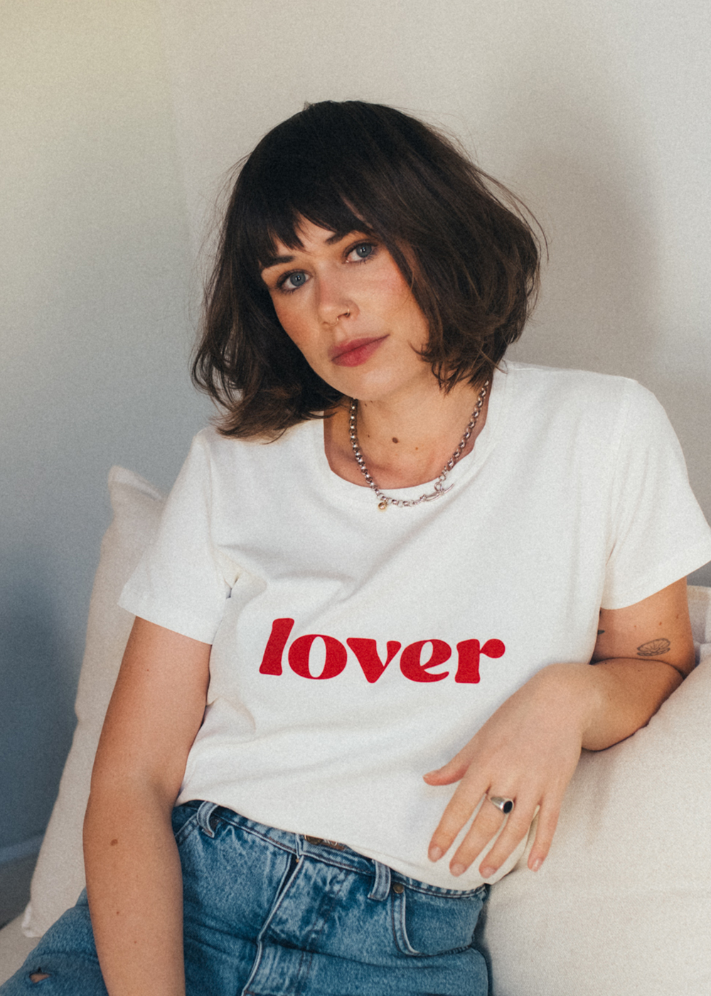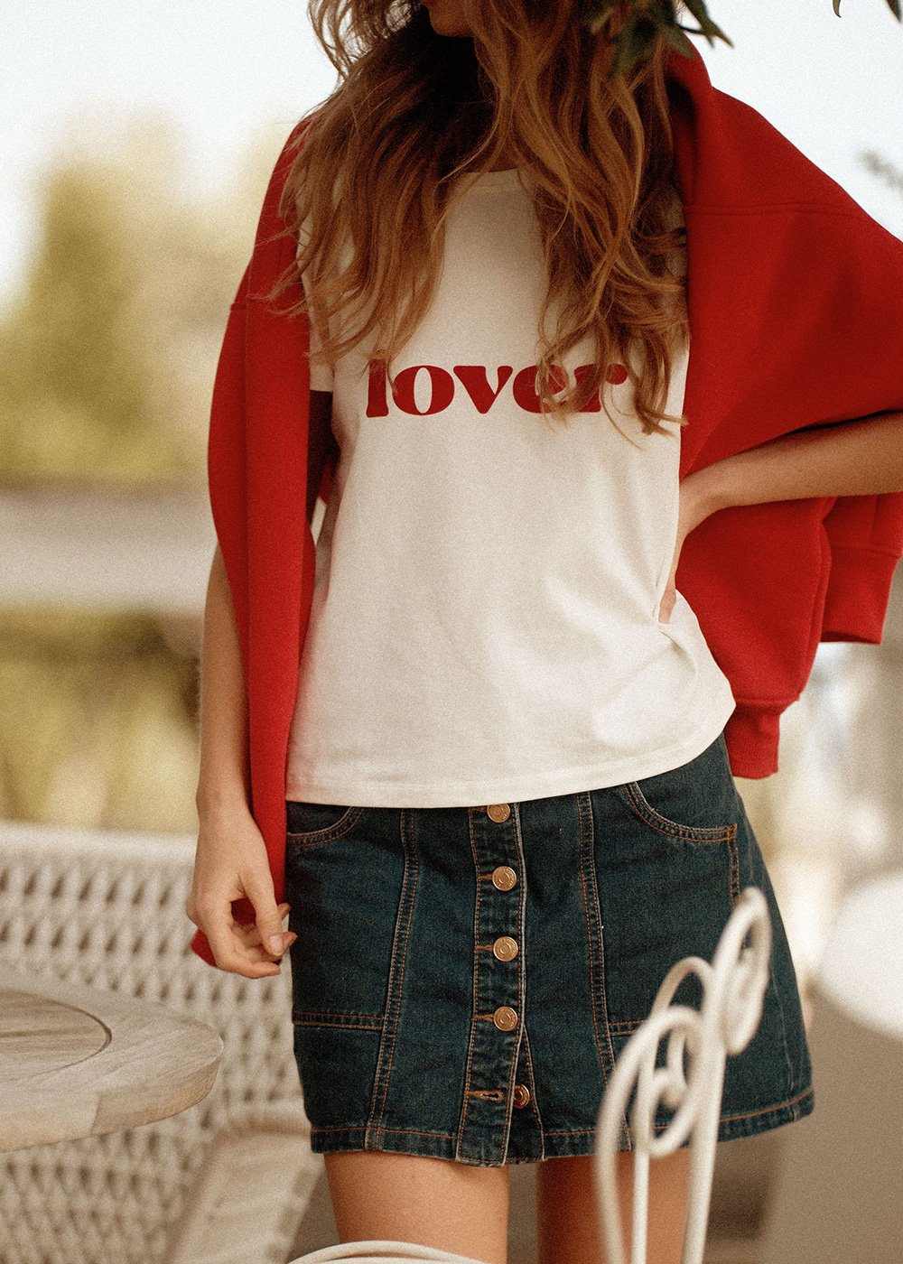 Minimalistyczny, a zarazem wyrazisty, damski T-shirt z napisem lover to esencja miłości i stylu. Dla wszystkich kochających, kochanych i zakochanych! Doskonały na Walentynki, czy inne miłosne spotkania. Wykonany z miękkiej, przyjemnej w dotyku bawełny. To model, który pasuje absolutnie do wszystkiego! Noś go z ulubionymi jeansami, szerokimi spodniami czy dziewczęcą mini – zawsze wygląda stylowo i na luzie. Koszulka lover to nasz nowy model – bardziej dopasowany i krótszy od naszych dotychczasowych t-shirtów.