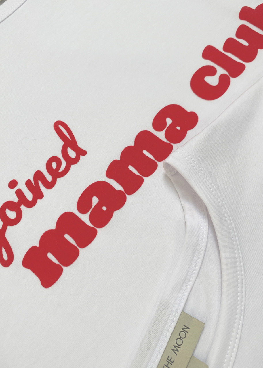 Koszulka dla mam. Tych oczekujących, świeżo upieczonych, a także tych, które macierzyństwem cieszą się już od kilku lat. Dla wszystkich, które po prostu kochają bycie mamą. Dołączcie do klubu mama club. To także świetny prezent na baby shower i Dzień Mamy. T-shirt uszyty jest z wysokogatunkowej bawełny z dodatkiem elastanu, dzięki czemu idealnie układa się i dopasowuje do sylwetki. Na przodzie ma nadruk mama club wykonany flockiem, czyli z aksamitnym meszkiem.