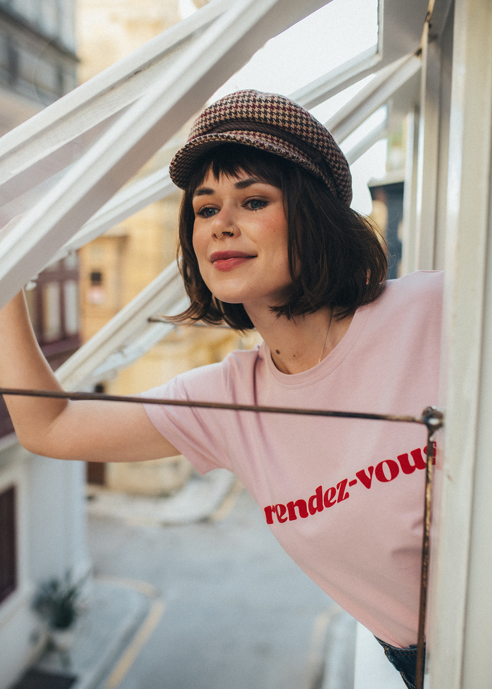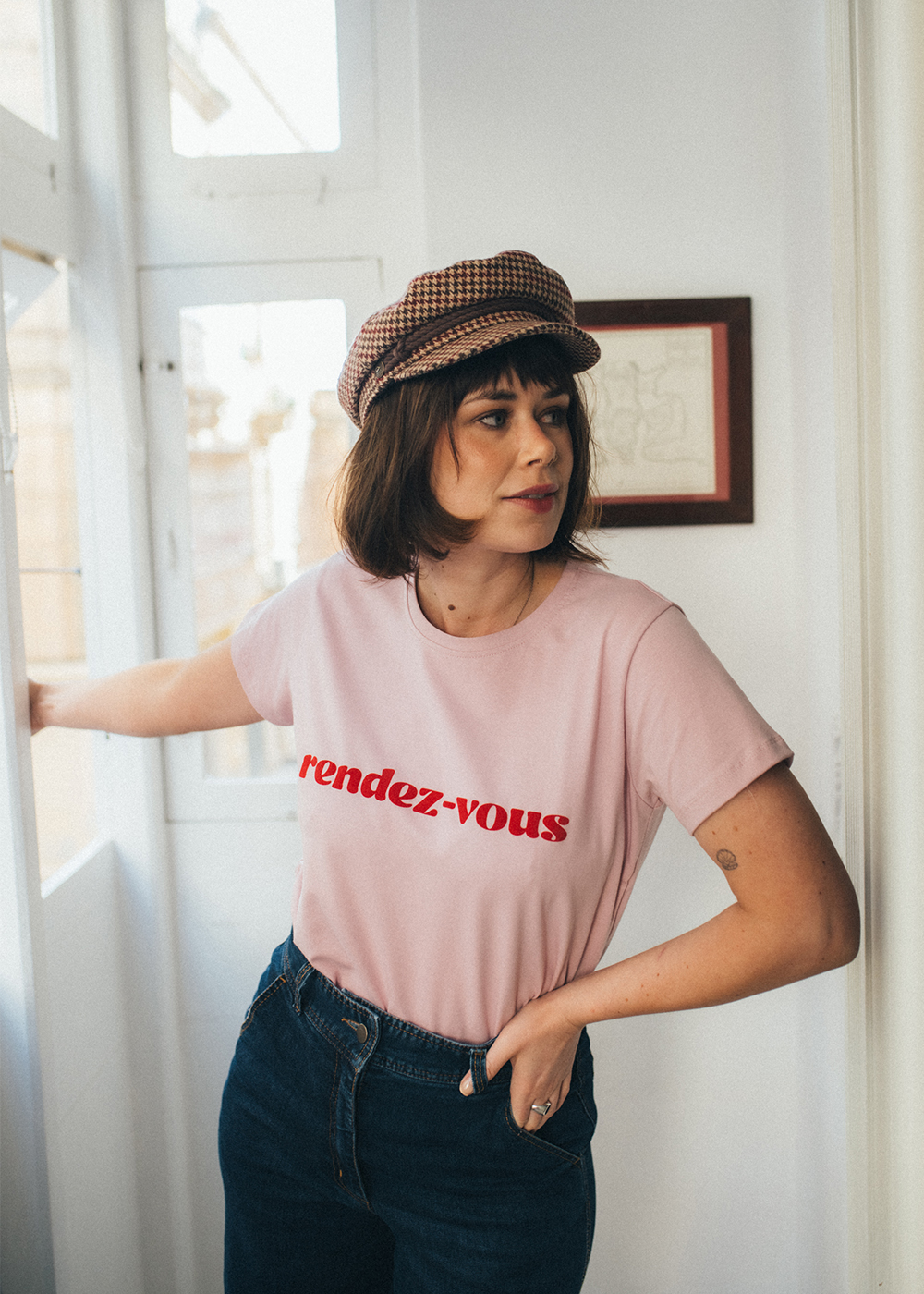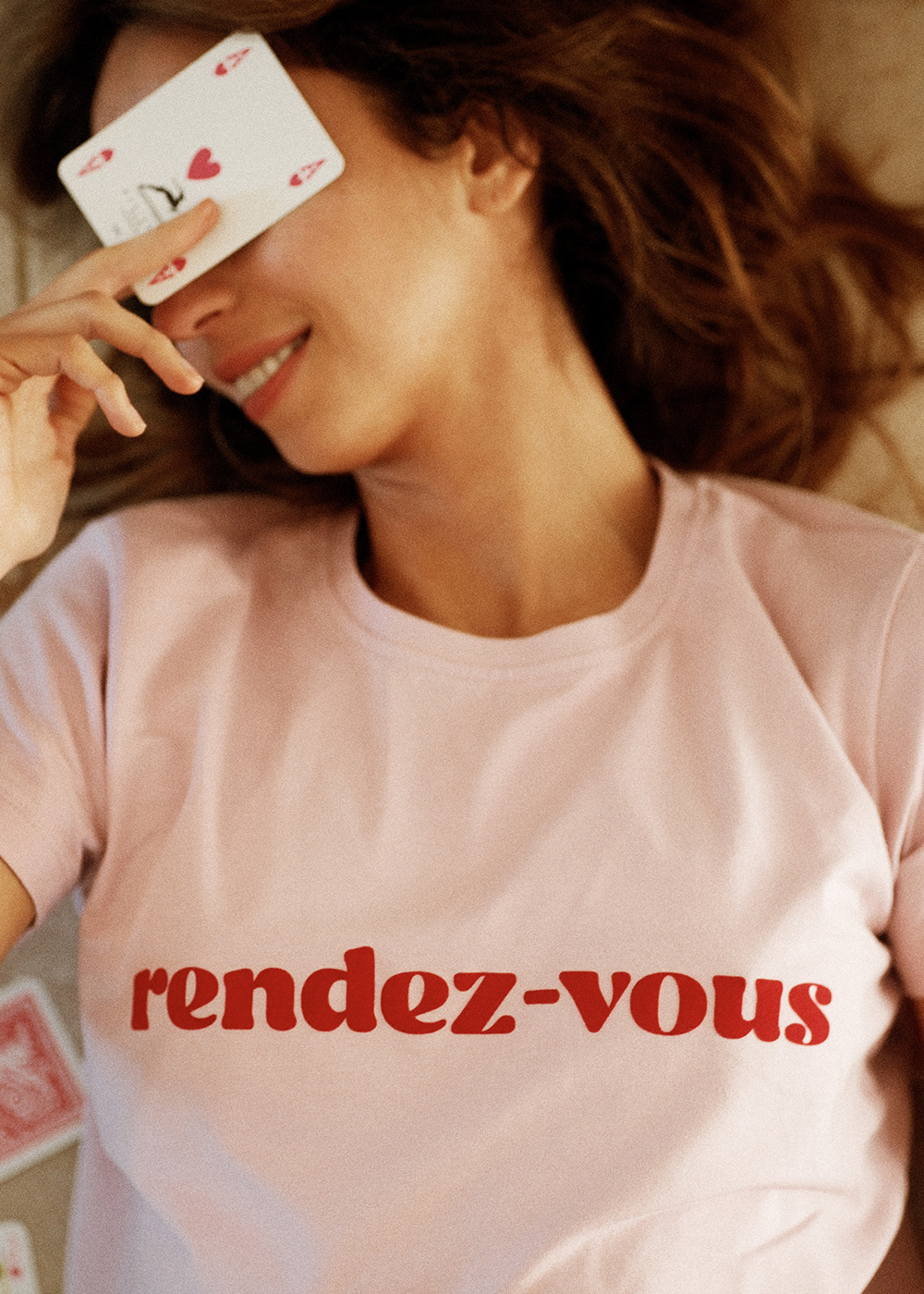Nasz nowy model t-shirtu – krótszy i bardziej dopasowany. Uszyty z miękkiej i przyjemnej w dotyku bawełny. Zgaszony róż i intensywnie czerwony napis rendez-vous to połączenie subtelnej romantyczności z nutą paryskiego szyku. Idealny na randki, spotkania z przyjaciółmi i codzienne stylizacje, które chcesz doprawić odrobiną uroku. Noś go w wersji romantycznej ze zwiewną spódnicą lub postaw na casualowy luz z jeansami lub szortami.
