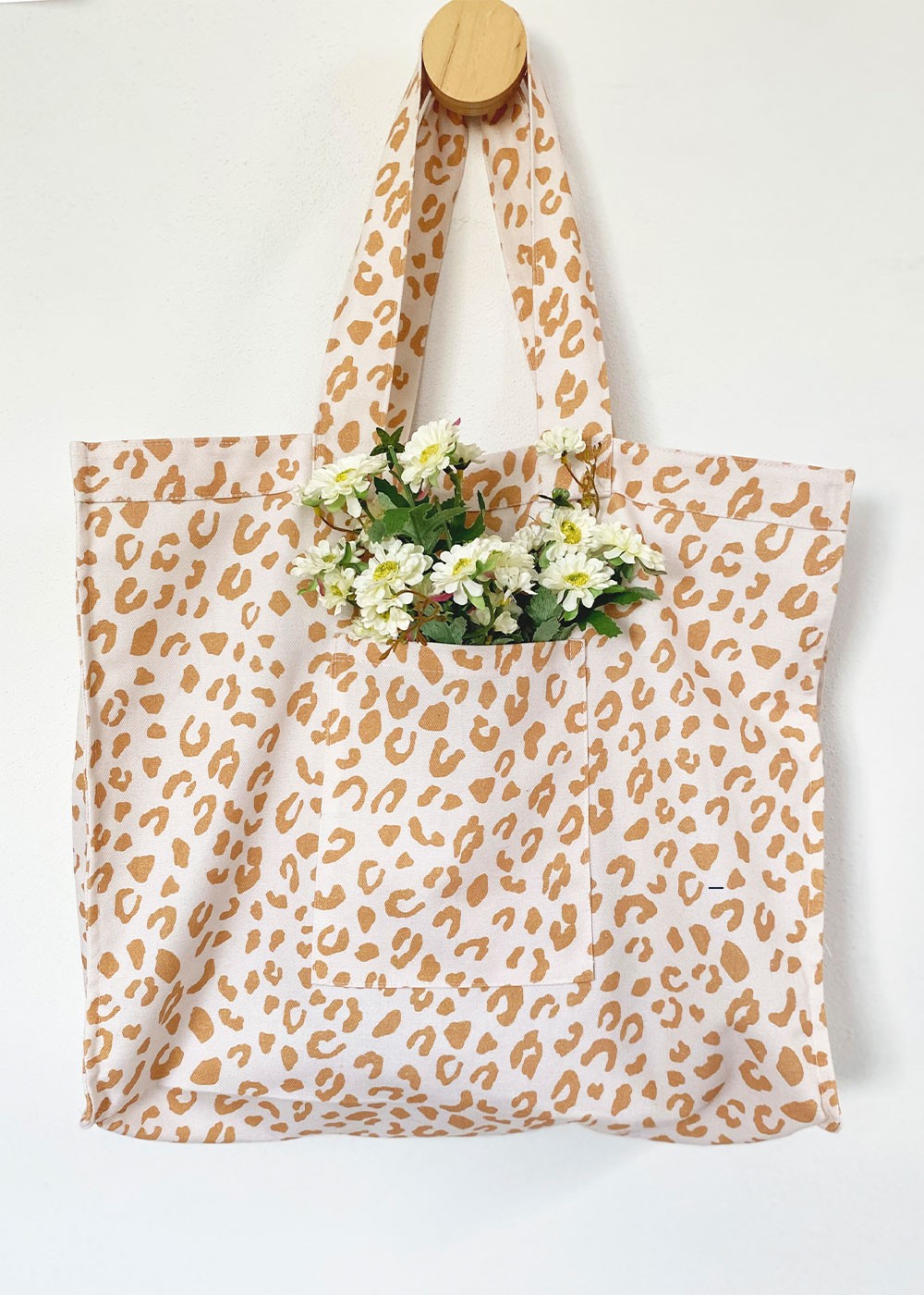 Tote bag made from high-quality thick cotton fabric. With an outside pocket. Perfect for summer trips. Check our dress’s offer and mix and match the bag with our Golden Leopard tunic or Golden Leopard Bardot dress. Enjoy wearing it together!