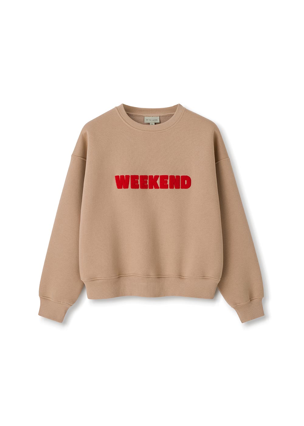 Bluza w kolorze camelowym z czerwonym, puchatym haftem chenille WEEKEND. Uszyta z miękkiej, bawełnianej dzianiny drapanej, z lekkim meszkiem od wewnątrz. Ma lekko oversize’owy, pudełkowy krój. Kolor camel dodaje jej sportowej elegancji. Wygląda równie dobrze z ulubionymi jeansami, jak i z naszymi dresowymi spodniami Relax camel. Na leniwe weekendy, spacery z kawą i chwile bez planu. Weekend nie musi trwać tylko dwa dni – z tą bluzą możesz mieć go codziennie;-)