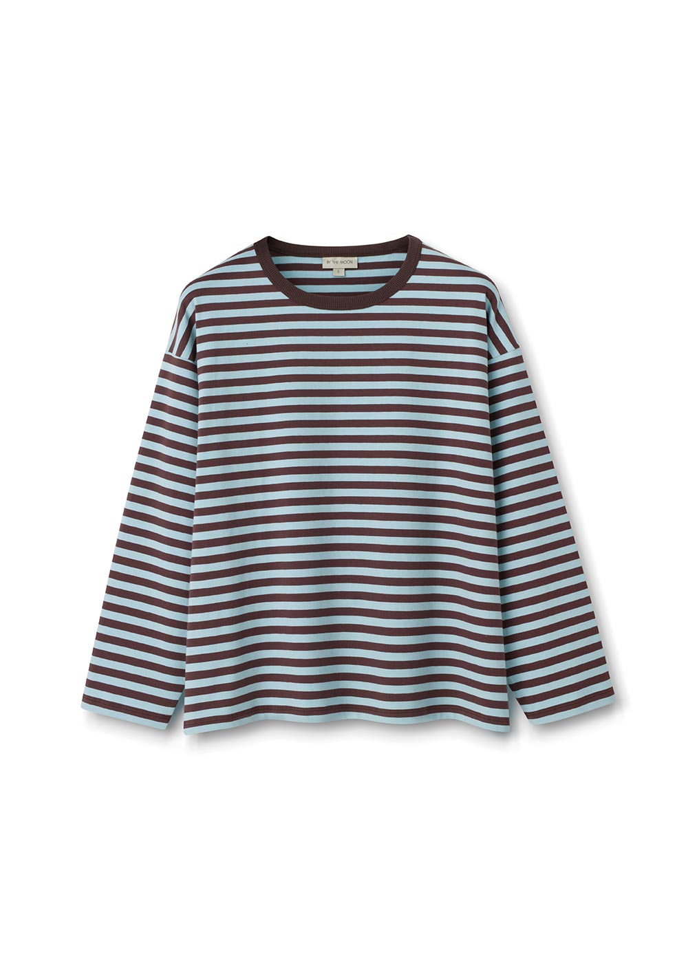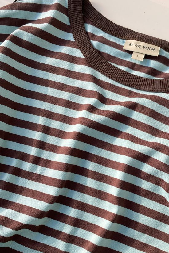 Klasyczny damski longsleeve, kwintesencja swobodnego stylu i modnego kontrastu. Połączenie ciepłego brązu z turkusem tworzy świeże, nieoczywiste zestawienie kolorów. Uszyty z miękkiej, bawełnianej dzianiny o prostym, oversize’owym kroju. Idealny na co dzień, świetnie wygląda w połączeniu z brązowymi kulotami czy szerokimi spodniami typu carrot.