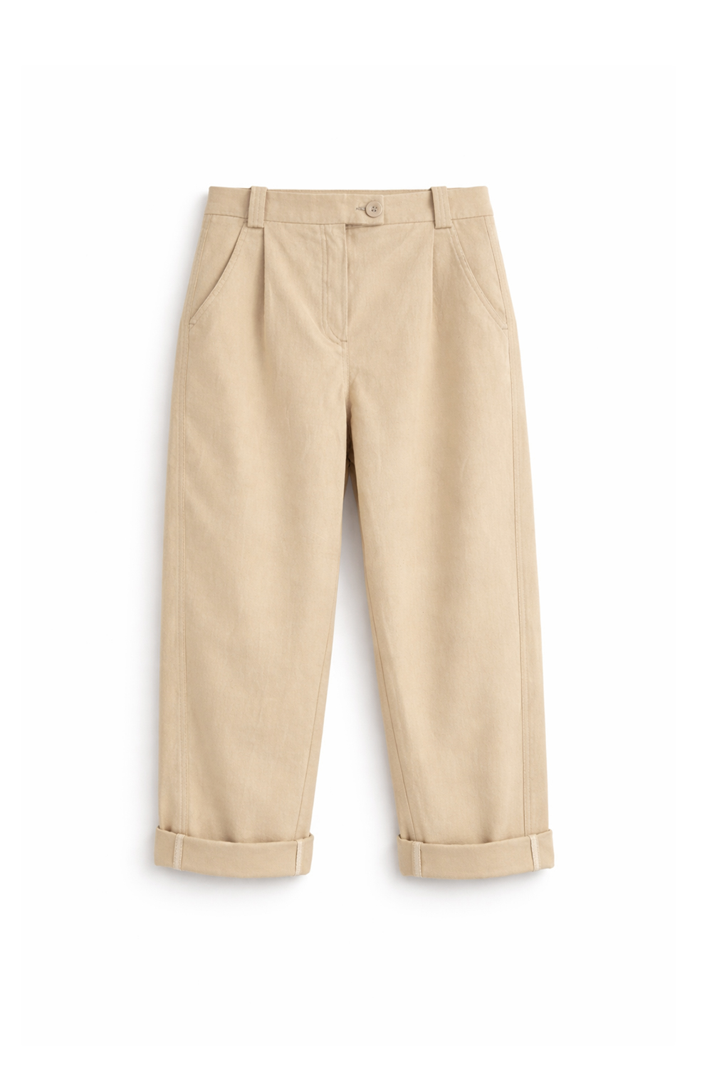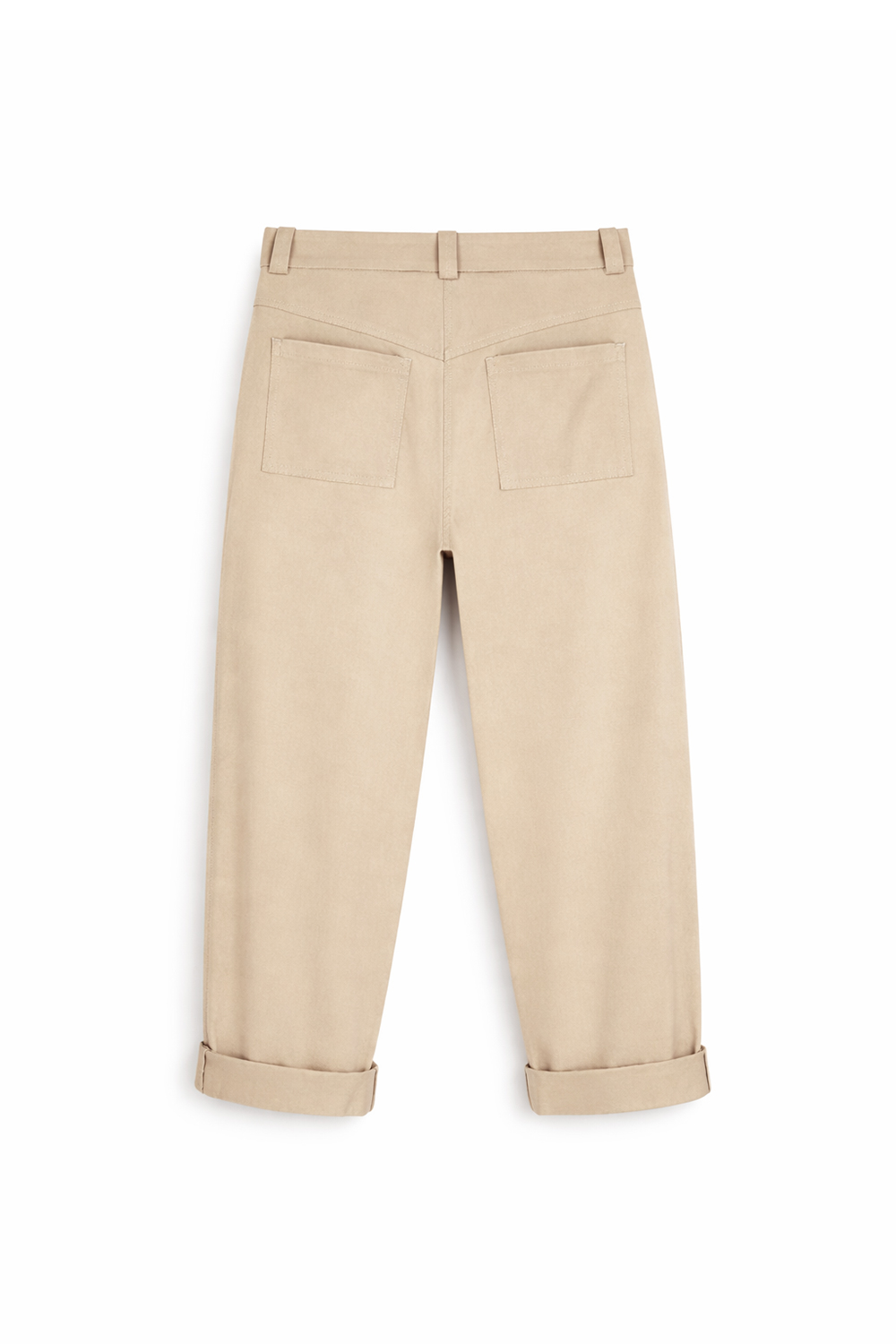 Piaskowe spodnie damskie w kroju carrot fit. Ich luźniejszy fason i zwężana nogawka tworzą nowoczesną sylwetkę, a przesunięty, dodatkowy szew boczny przełamuje klasykę. Z tyłu mają dwie naszywane kieszenie, które równoważą proporcje. Spodnie Wander to modne spodnie na co dzień, wygodne i uniwersalne. Noś je tak, jak lubisz: z podwiniętą nogawką i sneakersami, albo z koszulą, balerinami czy szpilkami. Tworzą świetny miejski look z naszymi obszernymi swetrami. Uszyte z materiału 100% bawełna.